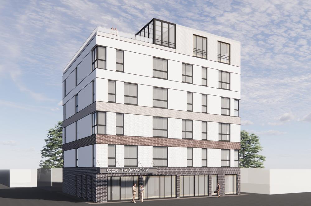 Архітектура готелю представлена чистим лаконічним об’ємом. Застосування керамічної цегли в опорядженні будівлі створює ледь помітні алюзії на історичну архітектуру замків та князівських палаців і підкреслює символізм розташування на вулиці Замковій. Естетику витонченості та легкості підкреслює нюансний підхід до кольорового рішення та акцентне використання декору.